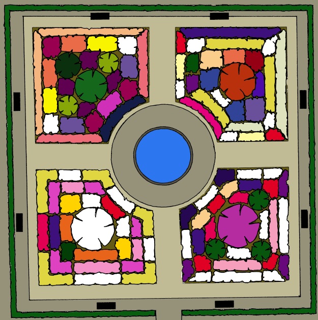 W średniowiecznej Europie ogrody pełniły funkcje użytkowe i duchowe. Przyklasztorne ogrody były miejscem upraw ziół leczniczych, owoców i warzyw, a jednocześnie przestrzenią kontemplacji. Wzorce były proste i funkcjonalne, zgodnie z duchem epoki. Najbardziej znane ze średniowiecza są oparte na planie kwadratu wirydarze – nawiązujące w zasadzie do układu antycznego atrium. Ogrody pojawiały się także przy zamkach obronnych, gdzie w pobliżu przestrzeni mieszkalnej tworzono podobne do wirydarzy ogrody różane.