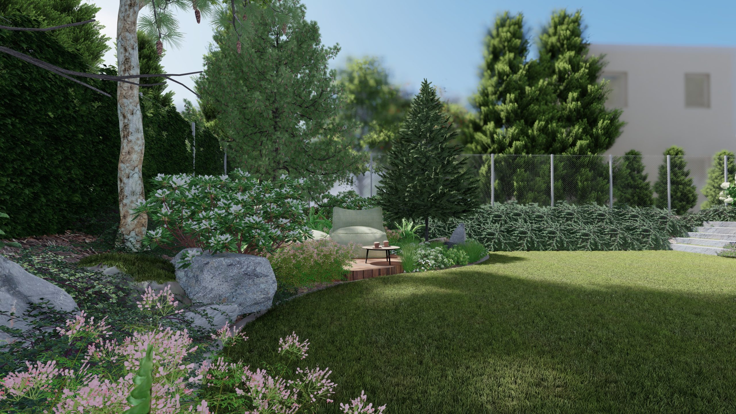 Stworzyłam ogród, w którym każda roślina, kamień i element architektoniczny mają swoje miejsce i cel. Inspiracją była chęć uchwycenia naturalistycznego piękna – dzikości przyrody bez zbędnej ingerencji, a jednocześnie dostosowanie skarpy do funkcji ogrodu. Skarpa powstała w związku ze zmianą ukształtowania terenu na działce – dom zyskał dodatkowe “piętro -1”, w którym znajdować się będzie basen i miejsce do wypoczynku za przeszklonym, dużym oknem z widokiem na ogród.